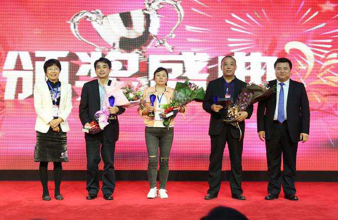 为了表彰为民营书业发展作出突出贡献的民营书业人,会议举行了盛大的颁奖典礼,魏玉山院长和张泉董事长等领导上台为获奖者颁奖。
