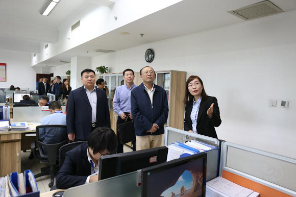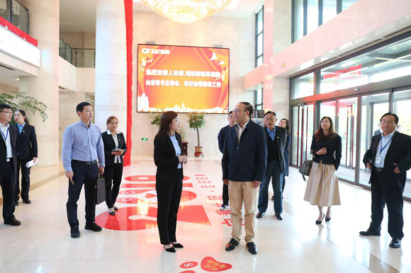 随后领导们参观了山东世纪金榜科教文化股份有限公司。认真观摩了公司的审校、微机、数字出版等部门,详细了解了图书生产和发行情况,切实体会到了公司的企业文化、经营理念,给予了充分肯定和高度赞扬。