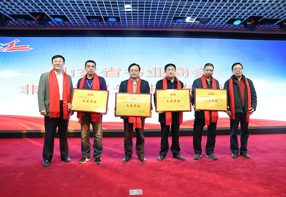 会议宣读了《山东省书业商会关于表彰非公有企业党建工作先进单位的决定》。山东世纪金榜科教文化股份有限公司、山东金蔡伦集团、邹平玉书印刷有限公司、淄博德恒印刷有限公司荣获“非公党建工作先进单位”荣誉称号。