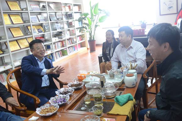 张泉会长与杨总并一起探讨新时代商会改革发展的思路和办法、研究乡村振兴中的农家书屋建设的现状和存在问题,提出了解决的措施。