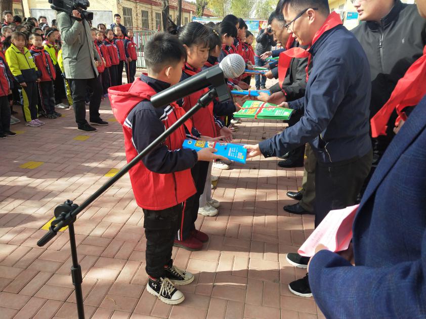 捐赠仪式在下洼镇曹庙小学举行,下洼镇曹庙小学校长苏长征首先感谢了山东省书业商会和两家赞助单位的大力支持。他表示,学校将以此次捐赠为契机,加强教育队伍建设,提升教学质量,提高办学水平。曹庙小学学生代表为主席台人员佩戴了红领巾。省派沾化下洼镇乡村振兴服务队、下洼镇负责人分别向山东省书业商会、山东世纪金榜科教文化股份有限公司、山东智乐星教育科技股份有限公司赠送了“关爱基层教育、助力乡村振兴”纪念牌匾。