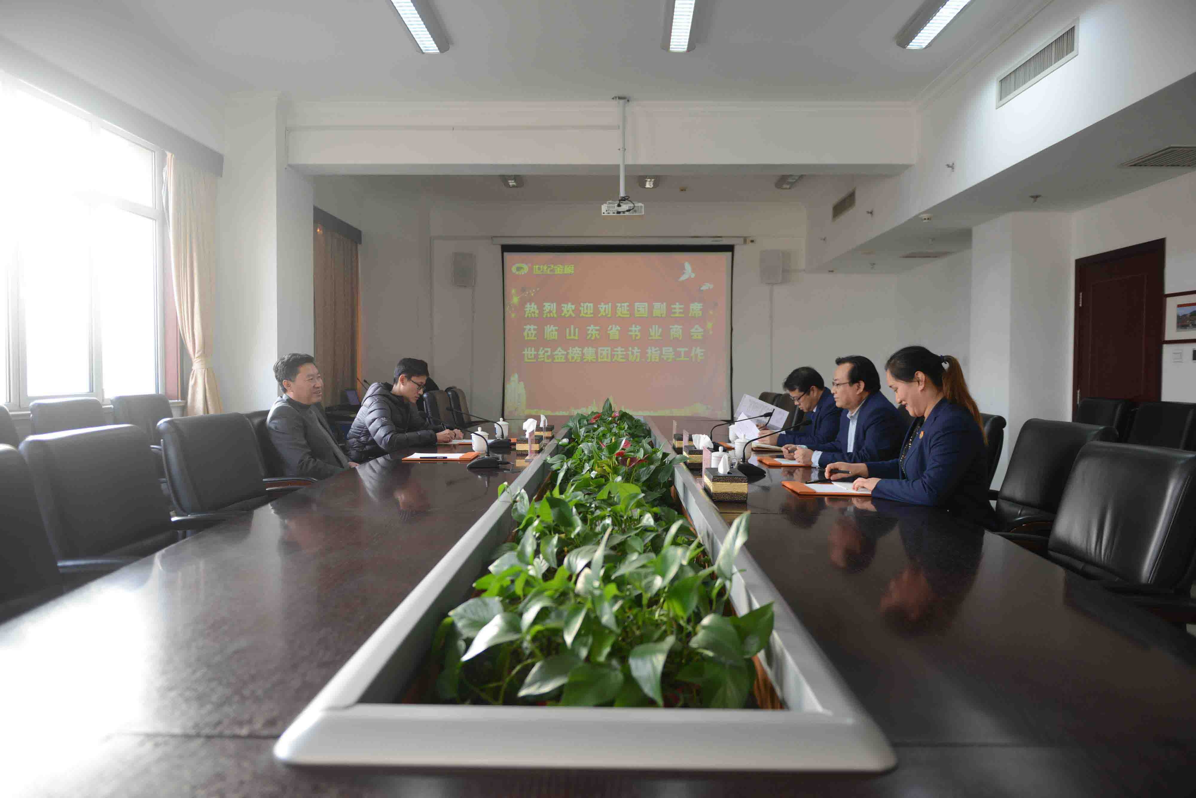 1月19日下午,济南市工商联党组成员、副主席刘延国,带领有关人员到山东省书业商会、世纪金榜集团走访慰问。向商会广大会员和集团员工致以春节的亲切问候。世纪金榜集团党委书记、副总经理袁立新、副总经理张乾及商会秘书处人员陪同座谈。