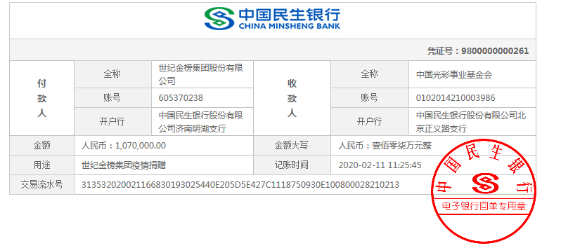 第三箭:2月11日上午,凝结着金榜人大爱的款项,通过中国光彩事业基金会完成捐赠,107万元善款将专项用于奖励奋战在湖北疫区一线的医务人员。