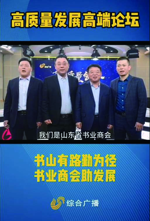 2020年4月23日,商会应邀座客山东广播电视台综合广播《高质量发展高端论坛》节目直播。节目在51听客户端、齐鲁网客户端、喜马拉雅客户端、蜻蜓FM客户端、新浪微博客户端、山东人民广播电台微信公众号音视频同步直播。山东省政协常委、山东省工商联副主席、山东省书业商会会长、世纪金榜集团股份有限公司董事长张泉,商会常务副会长、山东中教产业发展股份有限公司总裁魏立文,商会副会长、山东北佳文化传媒有限公司董事长魏玉山,商会常务理事、山东文友书店有限公司总经理任庆酣受邀参加本次论坛专访。
