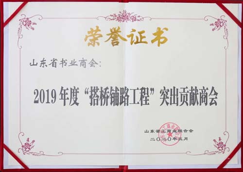 会议内容第一项,表彰省工联直属商会“2019年度考核优秀商会”、“抗击疫情先进商会”、“2019年度‘搭桥铺路工程’突出贡献商会”,山东省书业商会凭借扎实有效、求实创新的工作成绩,荣获全部奖项!商会副会长魏玉山受张泉会长委托,代表商会上台领奖。