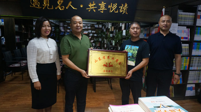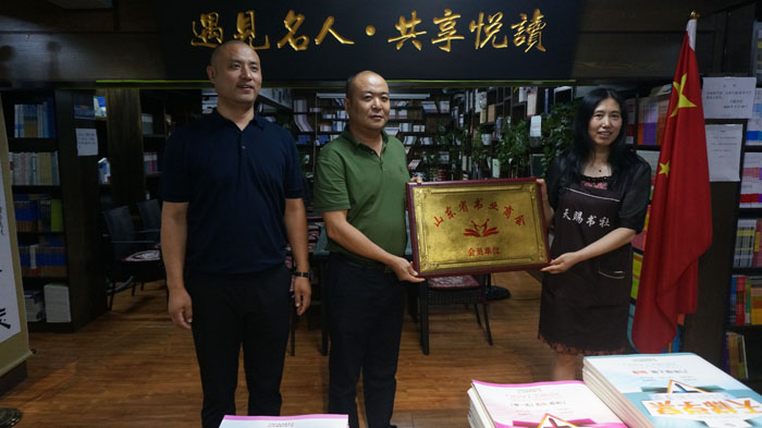 2020年8月27日,山东省书业商会副会长秦立升、秘书长张彦民带领秘书处工作人员到山东省首批最美书店、威海最具魅力文创艺术空间、山东省书业商会副会长单位——威海天梯图书有限公司走访交流,并为会员单位颁发了商会牌匾。于淼波副会长、刘延红总经理及公司各店负责人陪同参观并座谈。