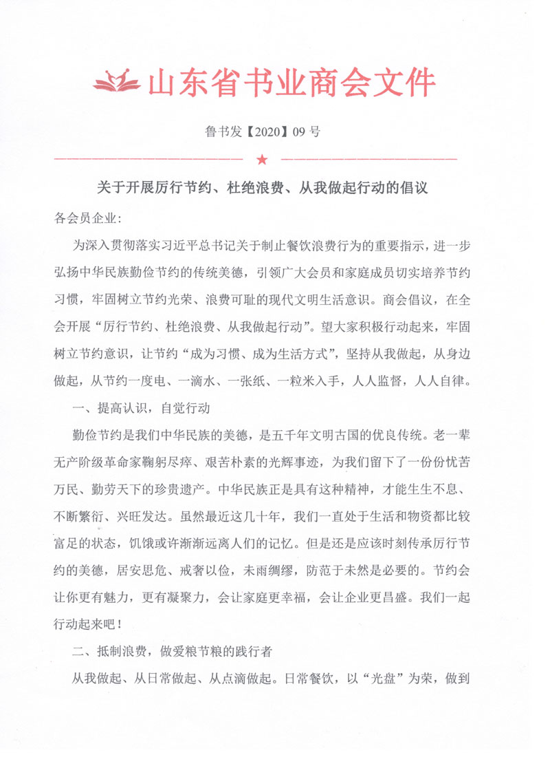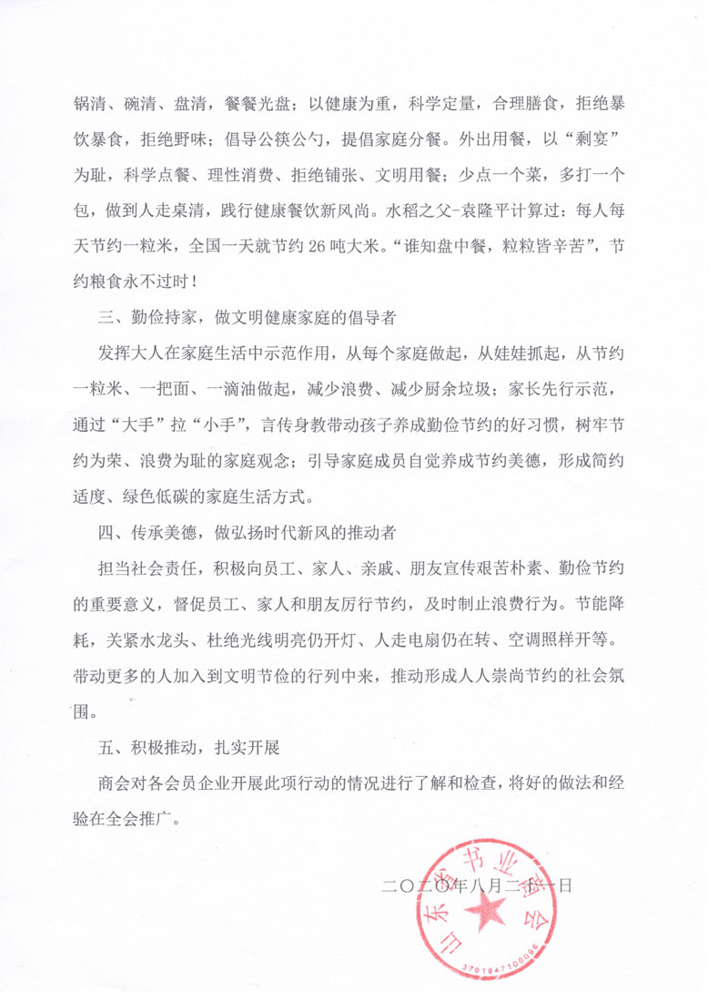 勤俭节约是我们中华民族的传统美德,建设节约型社会是党中央在新时期提出的一项重大战略方针,节约使用和合理利用资源,是大家义不容辞的责任。为此,商会向广大会员发出倡议: