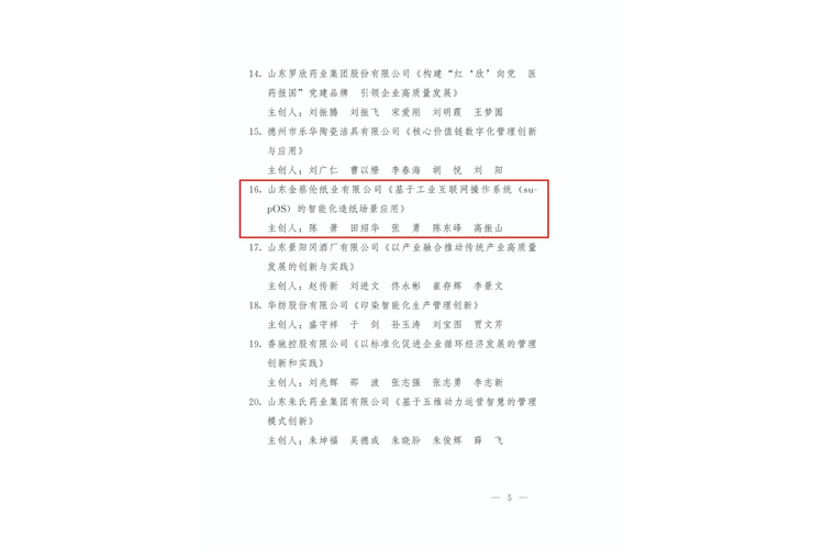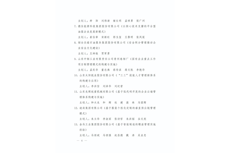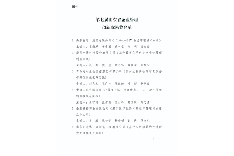 近年来,全省广大企业坚持以习近平新时代中国特色社会主义思想为指导,全面贯彻党的十九大和十九届历次全会精神,深入落实习近平总书记对山东工作的重要指示要求,围绕黄河流域生态保护和高质量发展的国家战略部署,不断加快企业现代管理制度创新,涌现出一批生产经营、数字化转型、安全治理等方面的优秀管理创新成果。为引导和激励广大企业进一步加强管理创新,加快建设一流企业,省政府决定,授予山东省港口集团有限公司《“1+4+12”业务管理模式创新》等20个创新成果为“第七届山东省企业管理创新成果奖”。