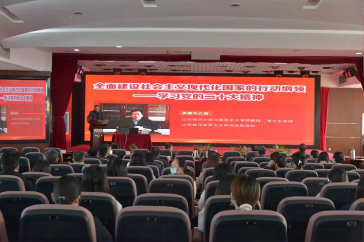 为切实抓好党的二十大精神学习宣传贯彻、推动党的二十大精神在商会和企业中落地生根。2022年11月16日,山东省书业商会与世纪金榜集团股份有限公司联合,举办了党的二十大精神辅导报告会,邀请山东省师范大学马克思主义学院知名教授、博士生导师高继文,作了主题为《全面建设社会主义现代化国家的政治宣言和行动纲领》的辅导报告。