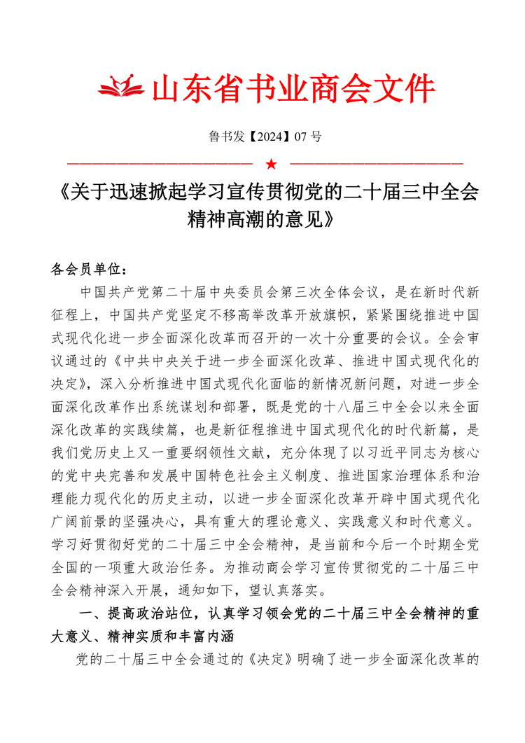 我会发布《关于迅速掀起学习宣传贯彻党的二十届三中全会精神高潮的意见》