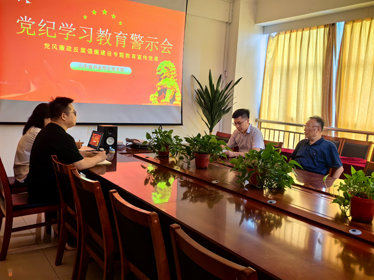 为推动党纪学习教育走深走实,教育引导党员学纪、知纪、明纪、守纪,7月23日,山东省书业商会在世纪金榜集团召开警示教育会。支部成员及秘书处工作人员参加会议。