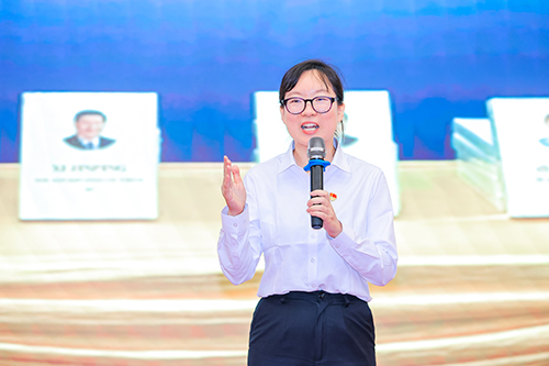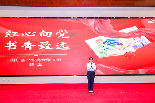演讲比赛环节,来自不同商会的八位选手同台竞技。他们用生动的语言、鲜活的案例讲述奋斗故事,抒发浓厚的爱党爱国情怀。根据现场评分,山东省书业商会党支部党员魏正同志表现优异,荣获三等奖,省人大常委会副主任,省工商联主席、省总商会会长王随莲为获奖人员颁奖。