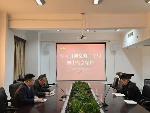 2025 年 11月5日上午,山东省书业商会党支部组织召开党员集体学习活动。本次活动专题学习贯彻党的二十届四中全会精神,支部书记张彦民主持会议,支部成员张宇飞、赵化雷及秘书处主任于文君出席本次会议。