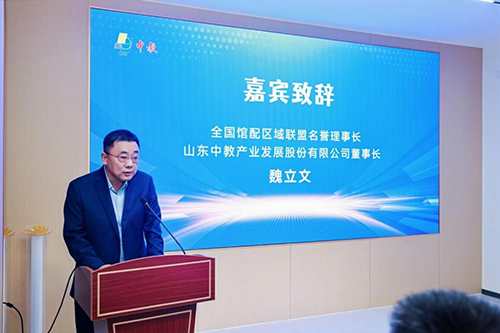 全国馆配区域联盟名誉理事长、山东中教产业发展股份有限公司董事长魏立文 致辞