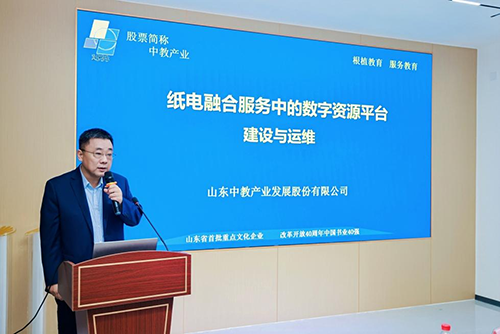 山东中教产业发展股份有限公司董事长魏立文做了题为《纸电融合服务中的数字资源平台建设与运维》的专题报告。