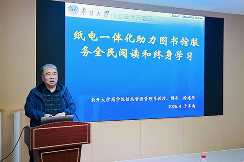 会议特邀中国图书馆学会编译出版委员会副主任、馆配与馆藏优化专业组主任、阅读推广委员会经典阅读推广专业组副主任、南开大学徐建华教授做了《纸电一体化助力图书馆服务全民阅读和终身学习》的主旨报告。