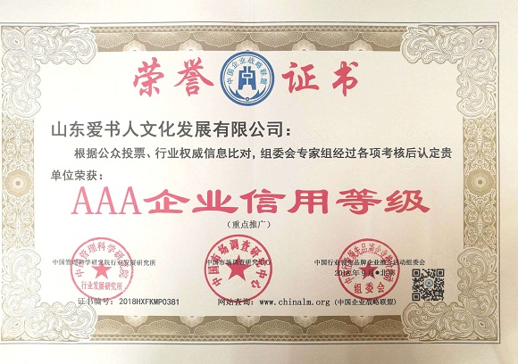 山东爱书人文化发展有限公司荣誉展示